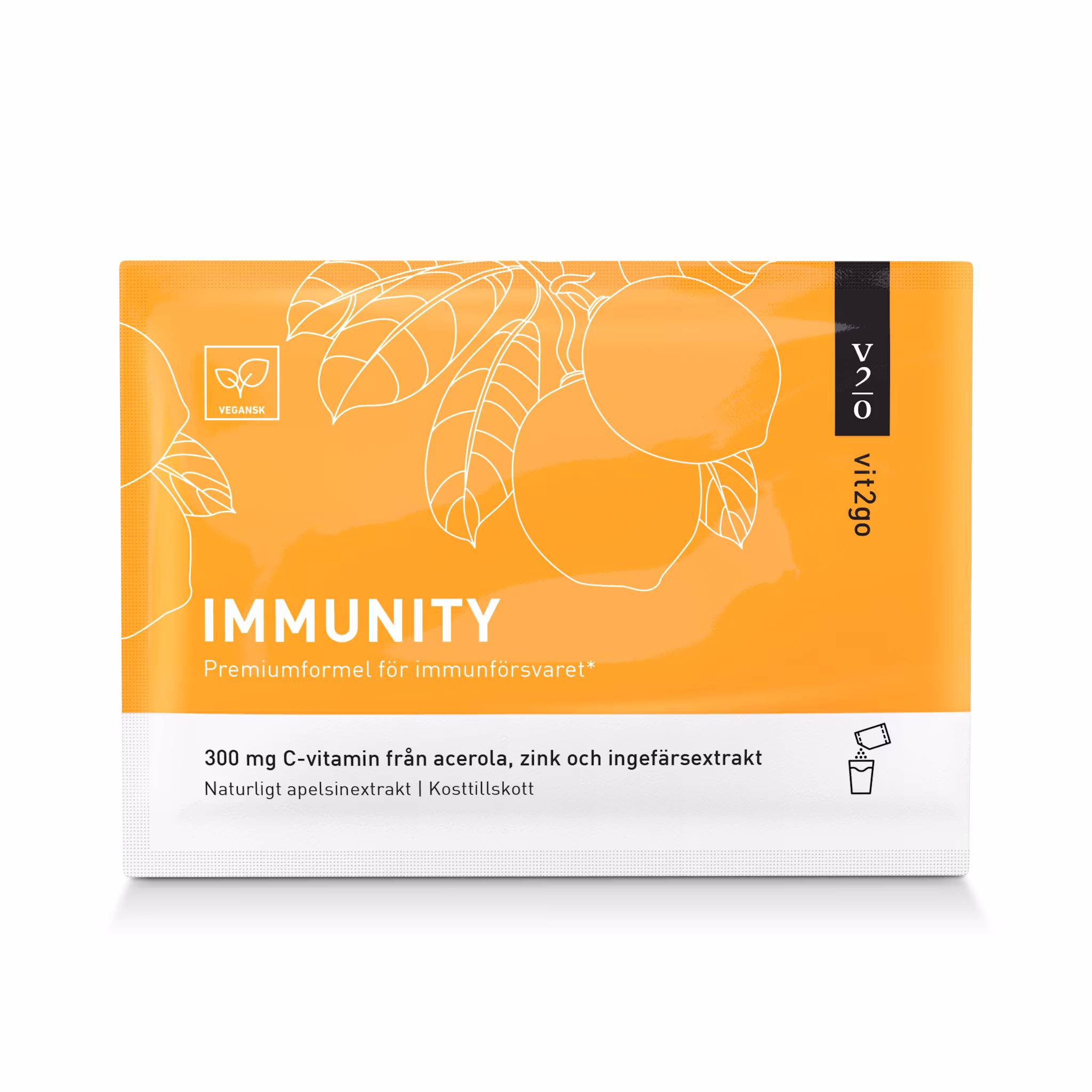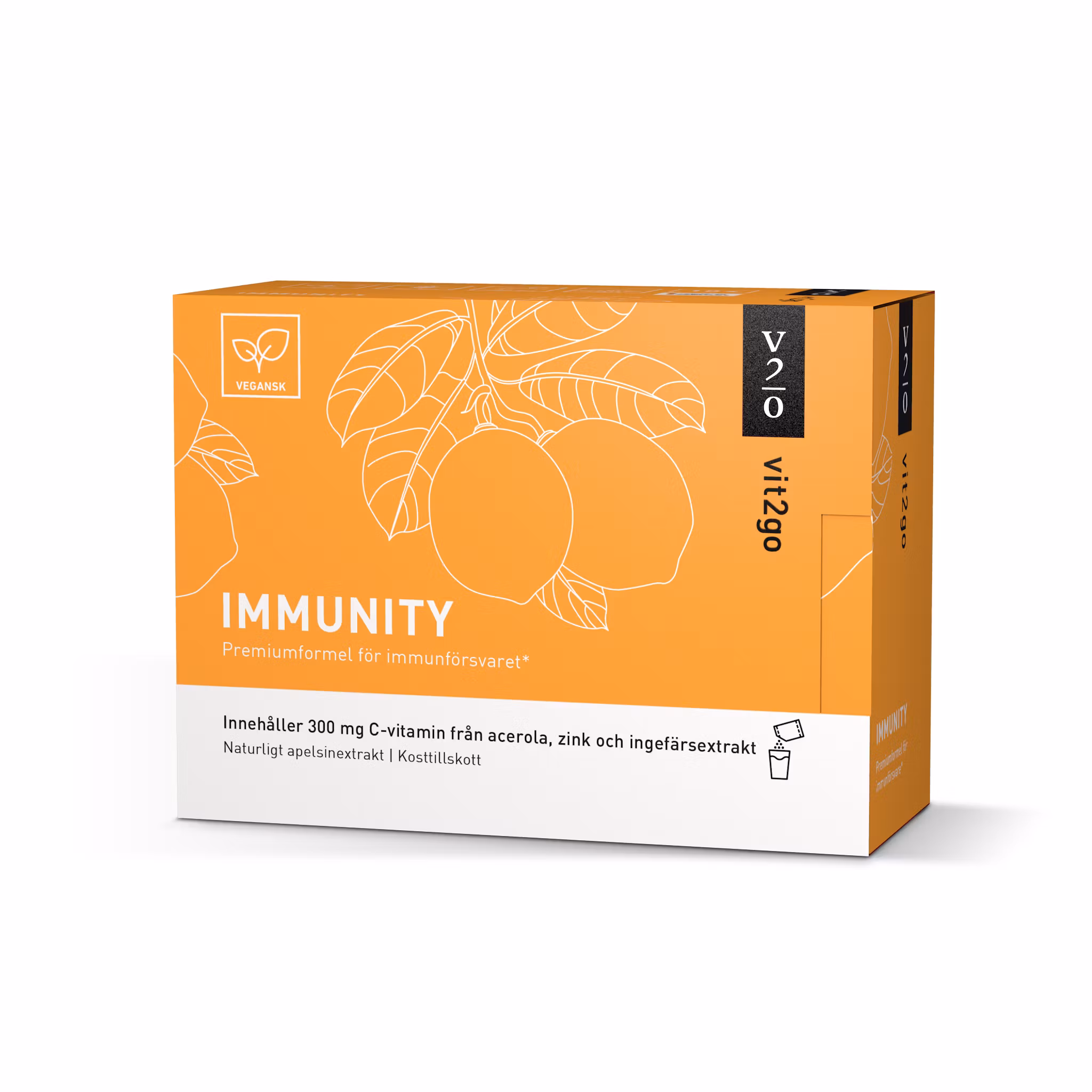 Med över 300 mg naturligt C-vitamin från acerola, samt vitamin D, K, zink, aminosyror, mineraler och spårämnen, ger Vit2go IMMUNITY din kropp allt den behöver för att hålla sig frisk och stark.